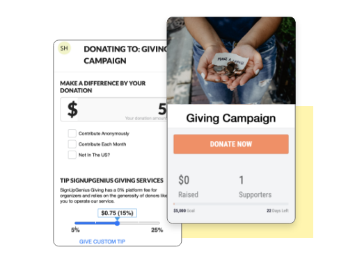 SignUpGenius Donations makes it easy to launch and manage your online fundraising campaign. With a simple setup, you can get started in minutes.
